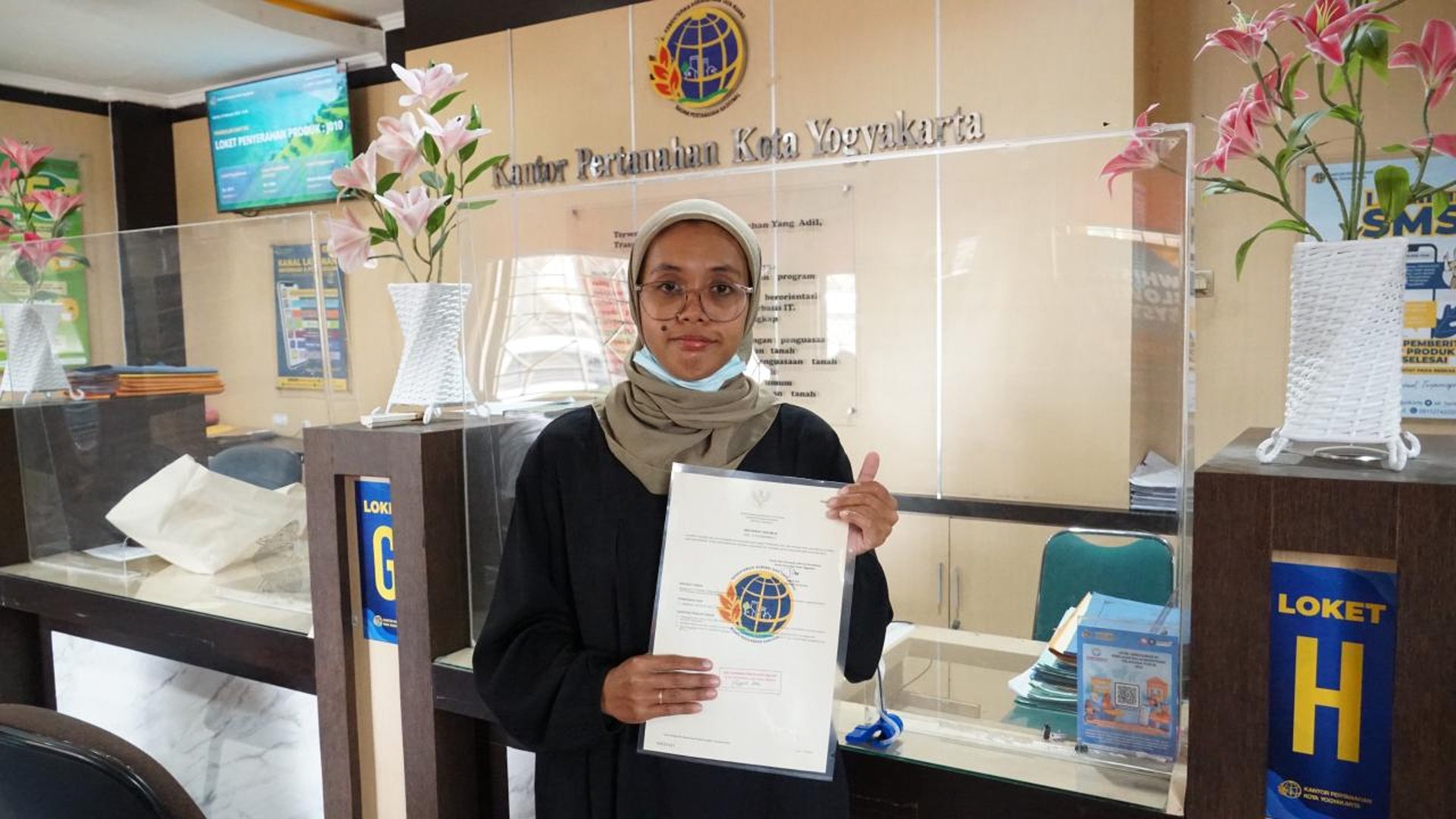Damayanti sendiri datang ke Kantah dengan bermaksud meningkatkan status aset miliknya dari Hak Guna Bangunan (HGB) ke Hak Milik. Ia menceritakan bahwa sebelumnya dirinya harus mengurus beberapa berkas dan melakukan legalisir berkas kepada instansi terkait untuk kelengkapan pengurusan aset tanahnya di Kantah Kota Yogyakarta.