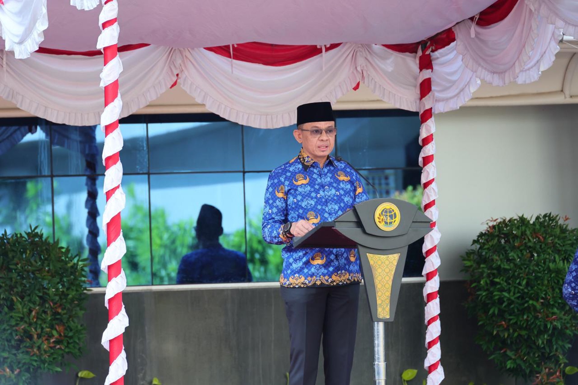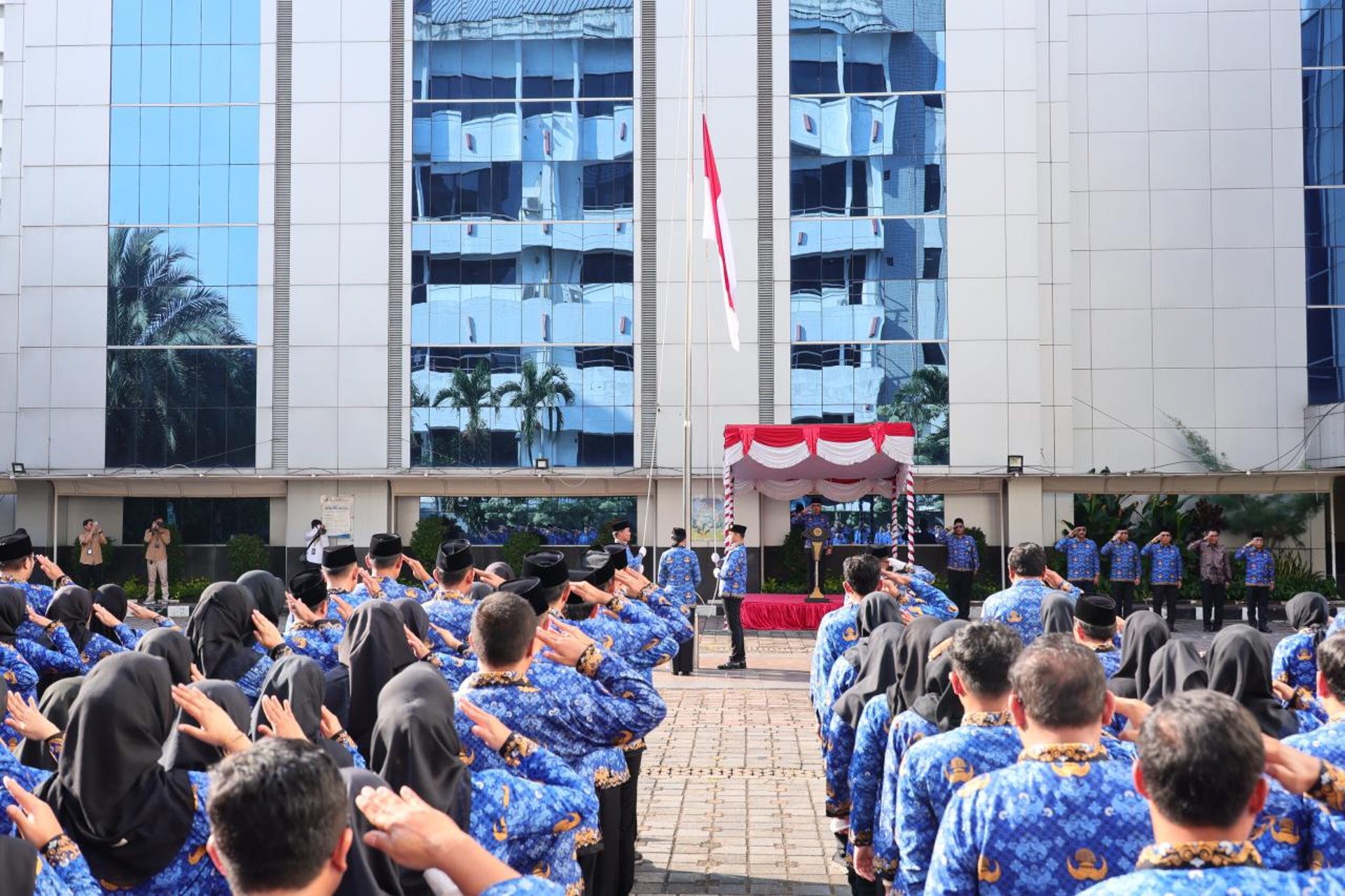 Jakarta - Kementerian Agraria dan Tata Ruang/Badan Pertanahan Nasional (ATR/BPN) menggelar Upacara Peringatan Hari Ulang Tahun (HUT) ke-54 Korps Pegawai Republik Indonesia (KORPRI). Selaku inspektur upacara, Direktur Jenderal Penetapan Hak dan Pendaftaran Tanah (PHPT), Asnaedi, menyampaikan amanat dari Ketua Umum Dewan Pengurus Korpri Nasional, Zudan Arif Fakrulloh terkait peran ASN dalam mendorong perubahan birokrasi.