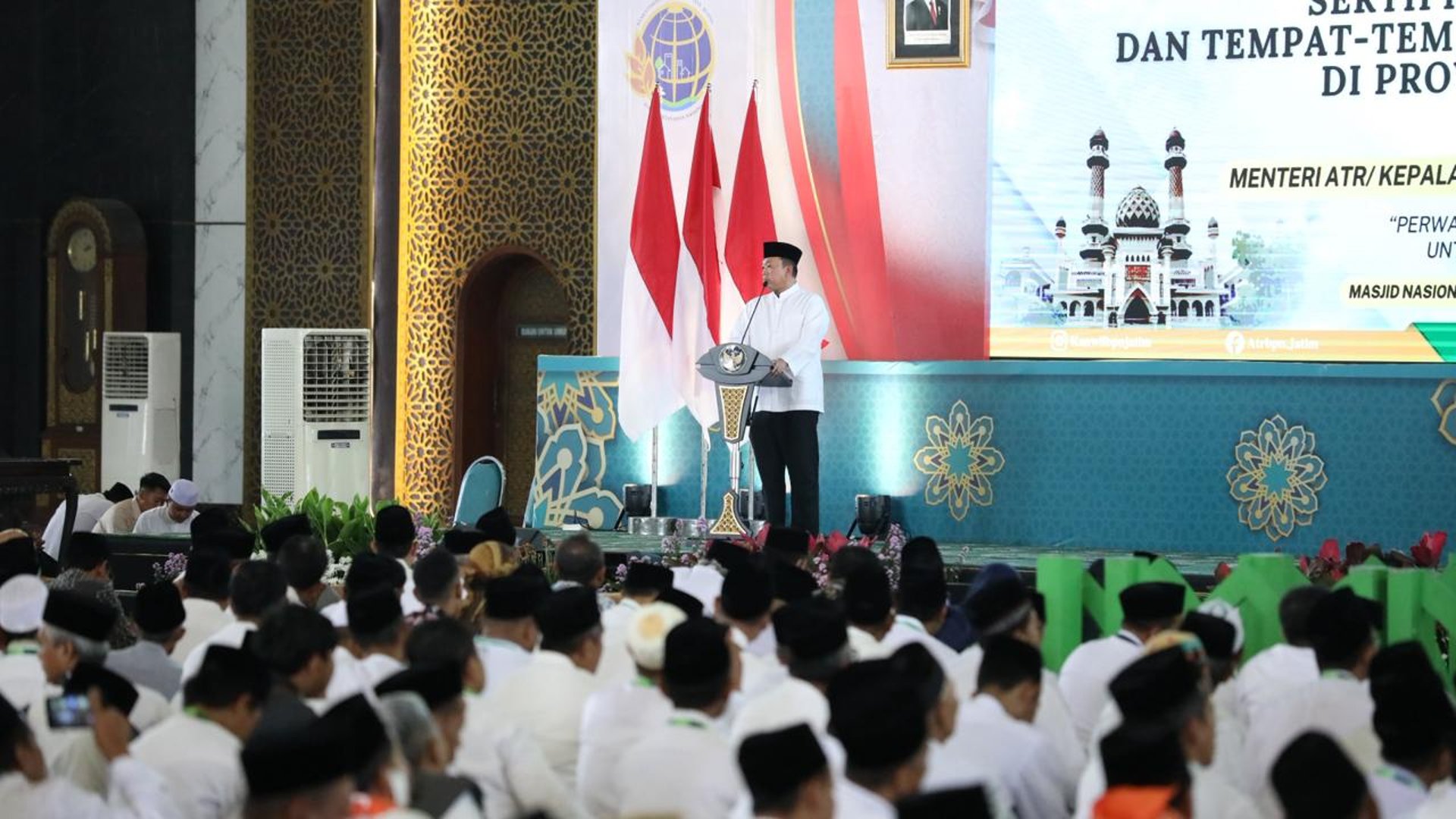 Selain sertipikat yang diterima oleh Romo Wahyu dan Lukman Hakim, pada kesempatan tersebut juga diserahkan 69 Sertipikat Hak Pakai atas nama Pemerintah Provinsi Jawa Timur; 747 Sertipikat Hak Pakai atas nama Pemerintah Kabupaten/Kota di Jawa Timur; serta 2.532 sertipikat tanah wakaf dan rumah ibadah untuk umat di Provinsi Jawa Timur. Sertipikat tanah wakaf dan rumah ibadah yang diserahkan diperuntukkan bagi 2.484 tanah wakaf (masjid, musala, pondok pesantren, dan wakaf produktif), 24 gereja, 18 pura, 3 wihara, serta 3 kongregasi. (MW/RT)
