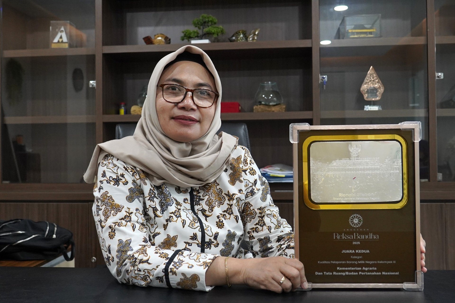 Jakarta - Kementerian Agraria dan Tata Ruang/Badan Pertanahan Nasional (ATR/BPN) meraih Juara Kedua Kategori Kualitas Pelaporan Barang Milik Negara (BMN) Kelompok III pada ajang Anugerah Reksa Bandha Tahun 2025. Penghargaan diterima langsung oleh Kepala Biro Keuangan Kementerian ATR/BPN, Kartika Sari, di Aula Gedung Syafruddin Prawiranegara II, Kementerian Keuangan, Jakarta Pusat.