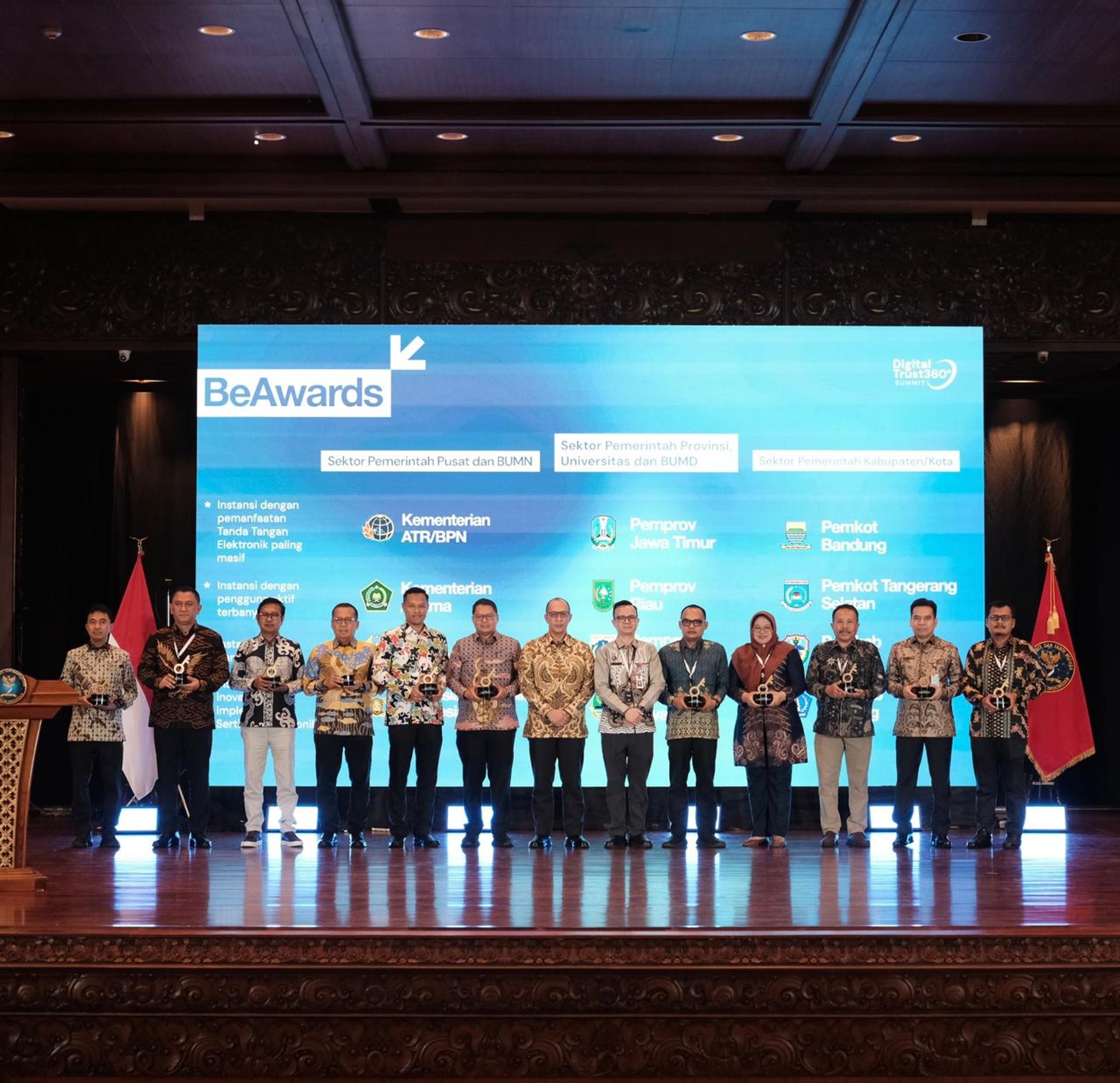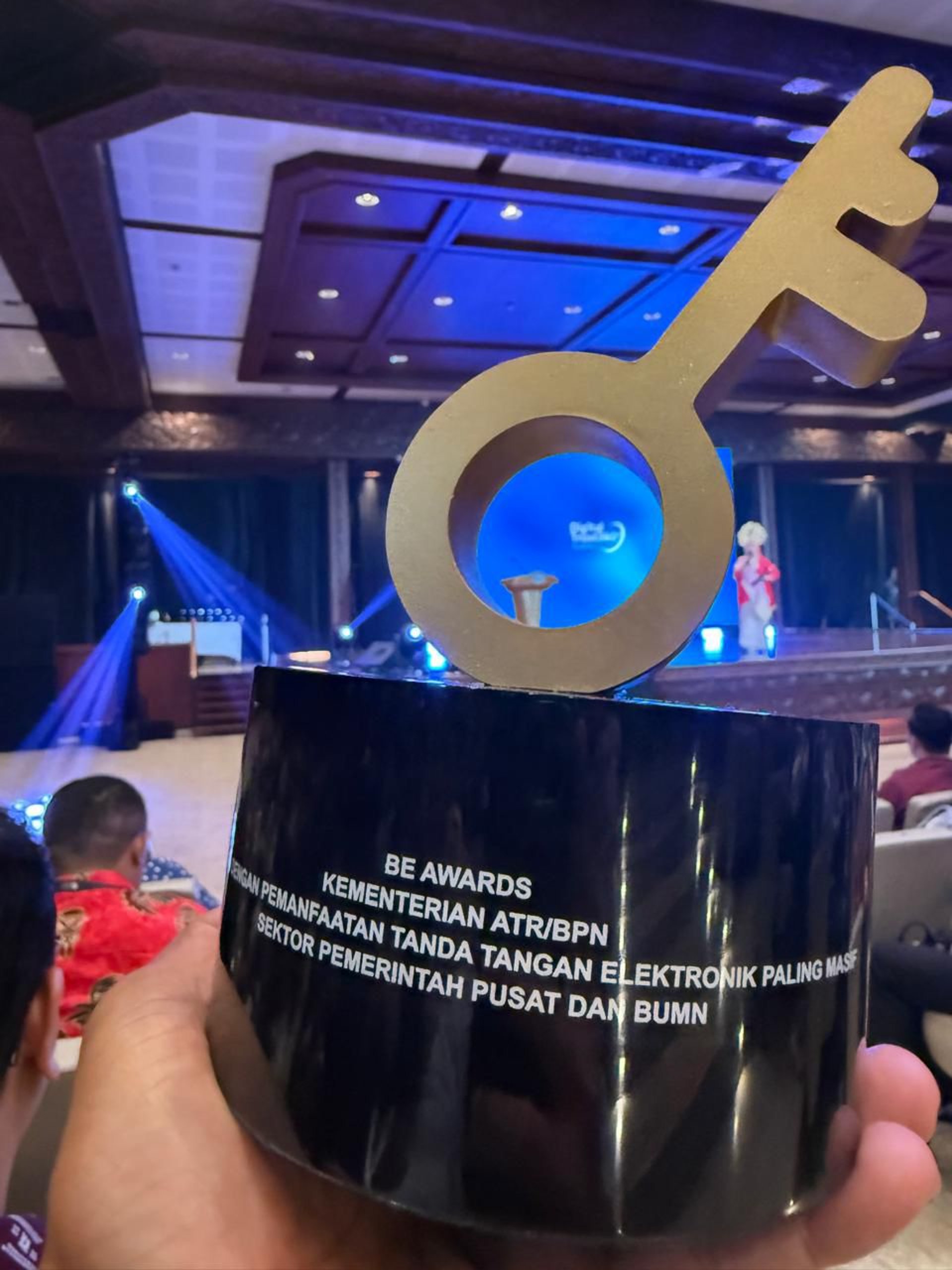 Dari Be Award, Kementerian ATR/BPN menerima penghargaan “Instansi dengan Pemanfaatan TTE Paling Masif”, bersanding dengan Pemerintah Provinsi Jawa Timur untuk kategori Sektor Pemerintah Provinsi, Universitas dan BUMD; serta Pemerintah Kota Bandung untuk kategori Sektor Pemerintah Kabupaten/Kota.