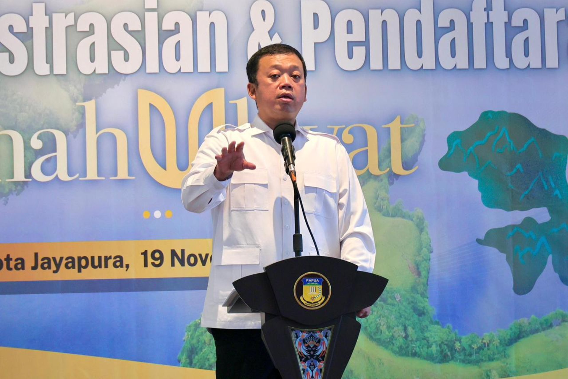 “Jangan sampai masyarakat adat hanya menjadi penonton atas proses pertumbuhan ekonomi. Kita sudah melihat contohnya di daerah lain, tanahnya dipakai, hasilnya besar, tapi masyarakat adatnya tidak mendapat apa-apa karena tidak ada pencatatan yang jelas. Jangan sampai itu terjadi di Papua.” kata Menteri Nusron dalam kegiatan Sosialisasi Pengadministrasian dan Pendaftaran Tanah Ulayat di Jayapura, Rabu (19/11/2025).