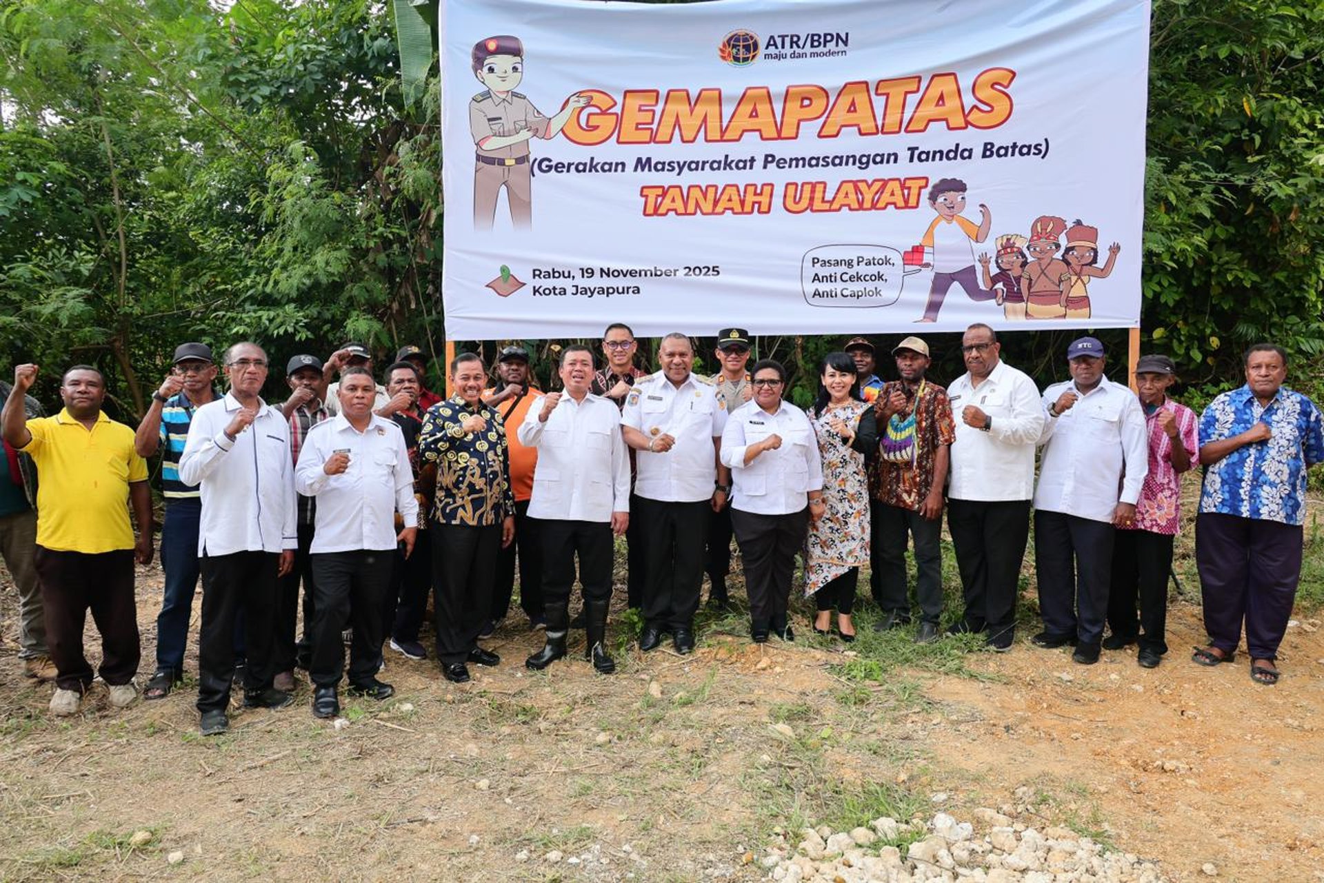 Jayapura - Pelaksanaan Gerakan Masyarakat Pemasangan Tanda Batas (GEMAPATAS) di Skouw Yambe, Distrik Muara Tami, jadi langkah percepatan pendaftaran tanah ulayat di Papua. Menteri Agraria dan Tata Ruang/Kepala Badan Pertanahan Nasional (ATR/BPN), Nusron Wahid, hadir menyaksikan pemasangan patok tanda batas tersebut pada Rabu (19/11/2025), sebagai bagian dari penetapan batas-batas tanah adat sebelum proses administrasi pendaftaran tanah dilakukan.
