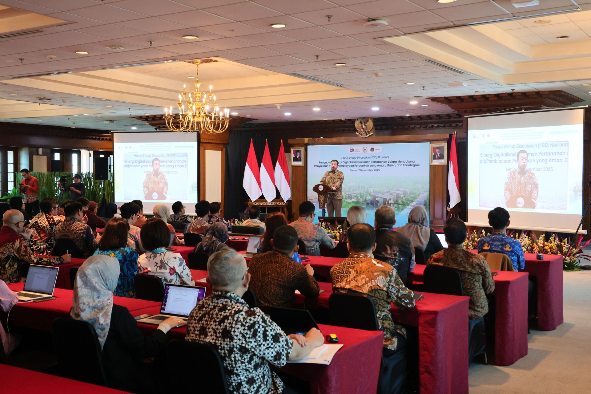 Mendampingi Menteri ATR/Kepala BPN pada acara ini, Direktur Pengaturan Pendaftaran Tanah dan Ruang, Pejabat Pembuat Akta Tanah, dan Mitra Kerja, Ana Anida. Turut memberi paparan dalam FGD, Kepala Eksekutif Pengawas Perbankan OJK, Dian Ediana Rae, serta Ketua Komisi II DPR RI, Muhammad Rifqinizamy Karsayuda. (JM/RT).(18/11/2025)