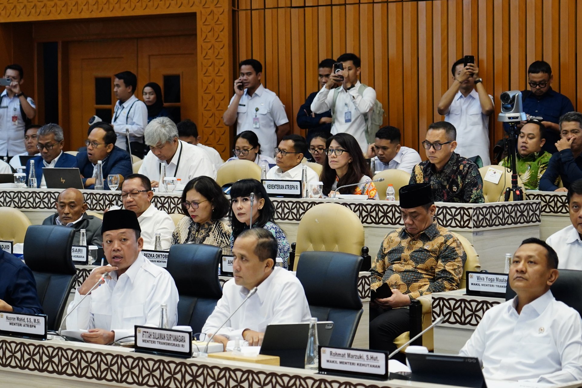 Raker tersebut dipimpin oleh Wakil Ketua DPR RI, Saan Mustopa, dan diikuti oleh Ketua Panitia Tim Pansus DPR RI Penyelesaian Konflik Agraria, Siti Hediati Soeharto, serta sejumlah Menteri/Kepala dan Wakil Menteri/Wakil Kepala dalam Kabinet Merah Putih. Turut mendampingi Menteri Nusron dalam kegiatan tersebut, Direktur Jenderal Survei dan Pemetaan Pertanahan dan Ruang, Virgo Eresta Jaya; Direktur Jenderal Penataan Agraria sekaligus Pelaksana Tugas Direktur Jenderal Pengadaan Tanah dan Pengembangan Pertanahan, Embun Sari; Staf Khusus Bidang Reforma Agraria, Rezka Oktoberia; serta sejumlah Pejabat Pimpinan Tinggi Pratama di lingkungan Kementerian ATR/BPN. (SG/FA)